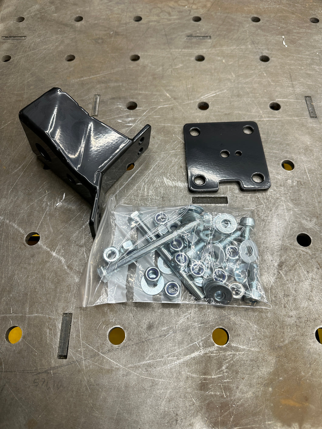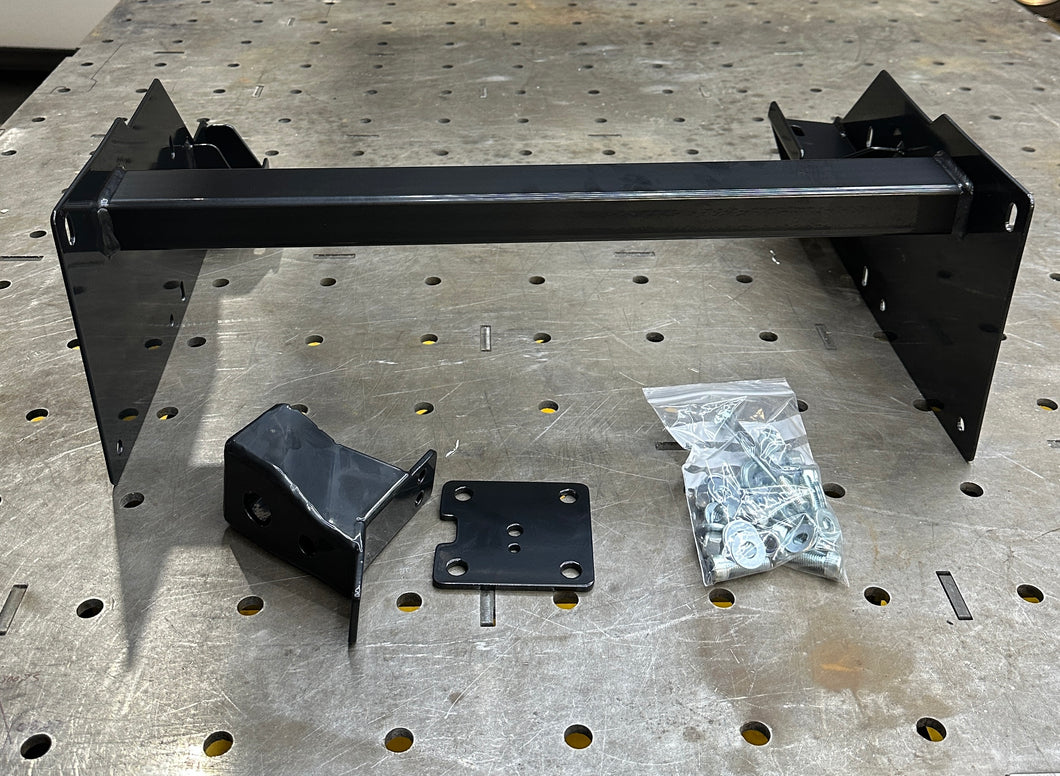 Crossmember, both transfer and adaptor bolt on mounting brackets, and new bolts for through the chassis and adaptor.